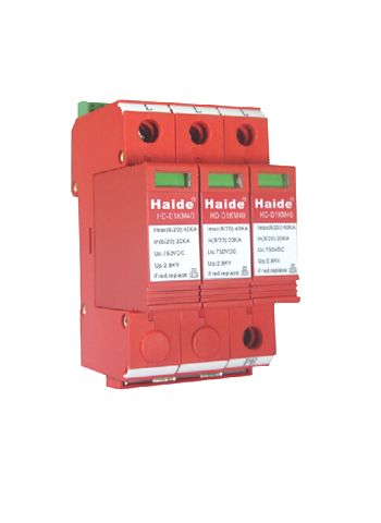 DIN導(dǎo)軌安裝,適用于600~1000V直流電源系統(tǒng)的防雷及過電壓保護(hù)。主要用于太陽能光伏發(fā)電系統(tǒng)等的電涌保護(hù),并聯(lián)安裝,不影響原系統(tǒng)的正常工作。