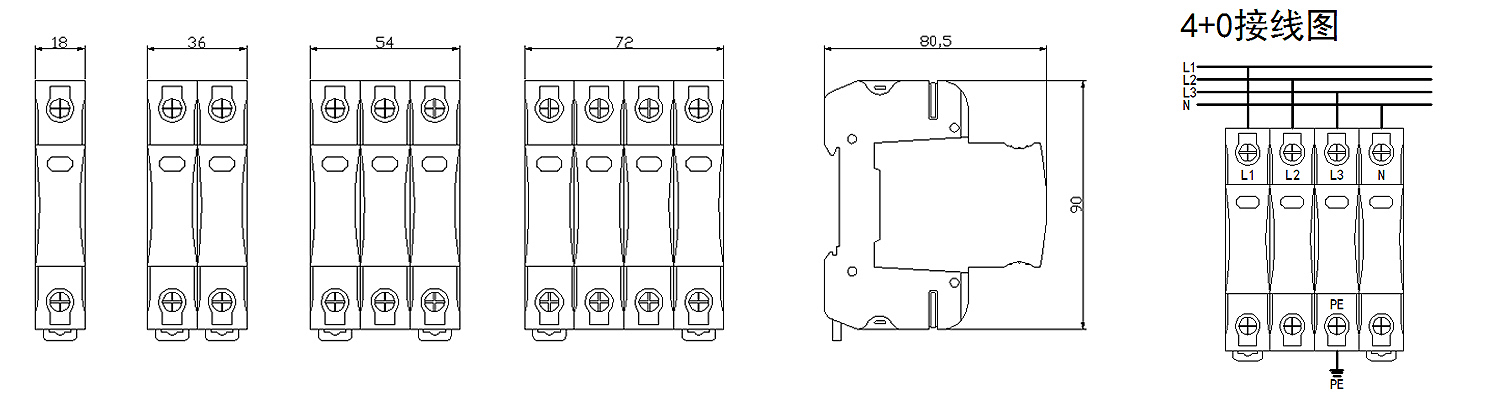 電源相線(L)、零線(N)分別接入電涌保護器相應(yīng)接線端子,保證牢固及可靠,將避雷器接地端與防雷地線(推薦接地電阻≤4Ω)作良好電氣連接。