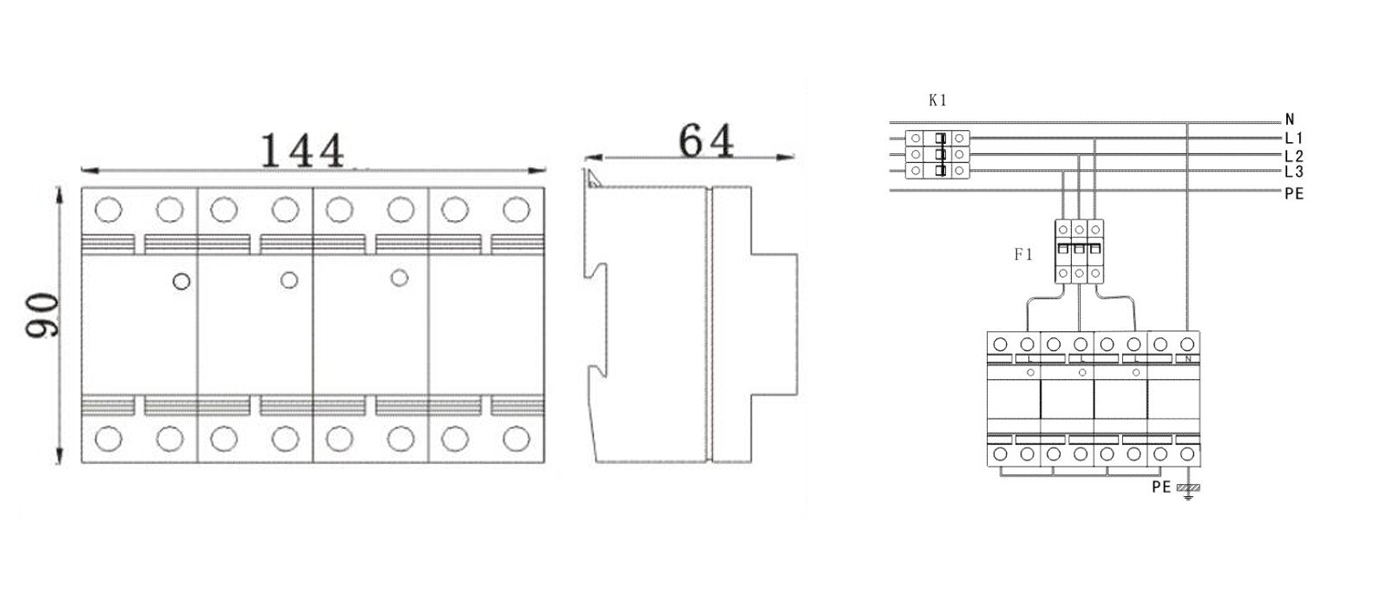 電源相線(L)、零線(N)分別接入電涌保護器相應接線端子,保證牢固及可靠,將避雷器接地端與防雷地線(推薦接地電阻≤4Ω)作良好電氣連接。