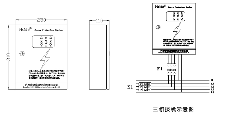 電源相線(L)、零線(N)分別接入電涌保護(hù)器相應(yīng)接線端子,保證牢固及可靠,將避雷器接地端與防雷地線(推薦接地電阻≤4Ω)作良好電氣連接。