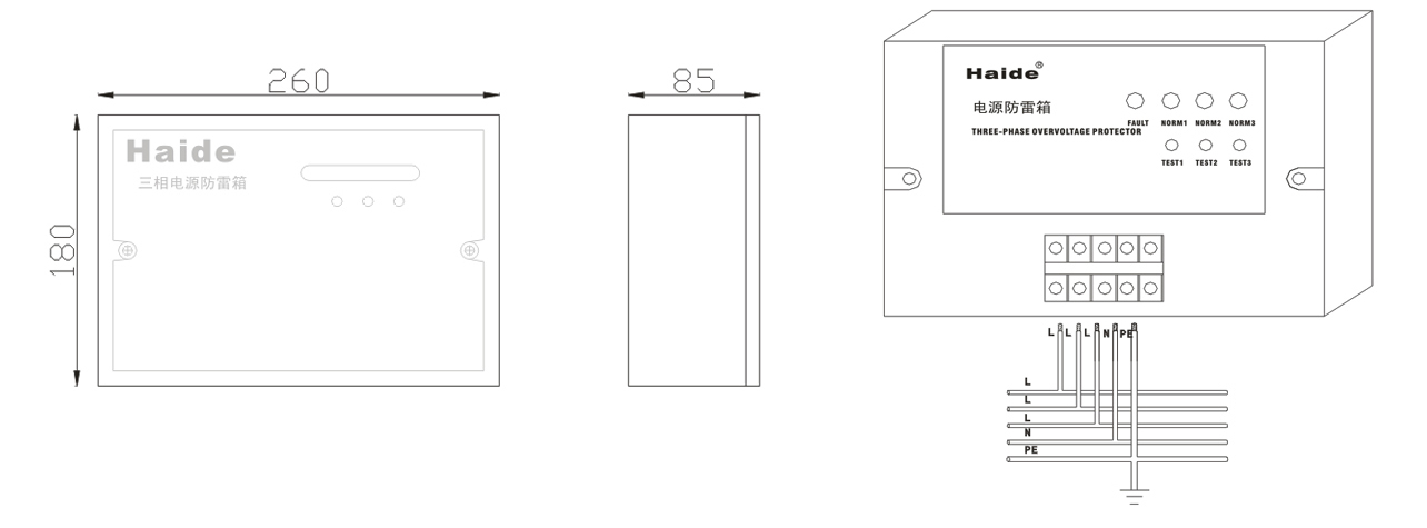 低壓配電系統(tǒng)電涌保護(hù)器,箱式,依據(jù)IEC標(biāo)準(zhǔn)設(shè)計(jì),具有失效檢測(cè)指示、過(guò)流過(guò)熱保護(hù),具備大的雷電流泄放能力,適用于建筑物電源系統(tǒng)的防雷保護(hù),維護(hù)極為方便,此防雷器并聯(lián)于線(xiàn)路中,對(duì)后接設(shè)備的功率無(wú)限制。