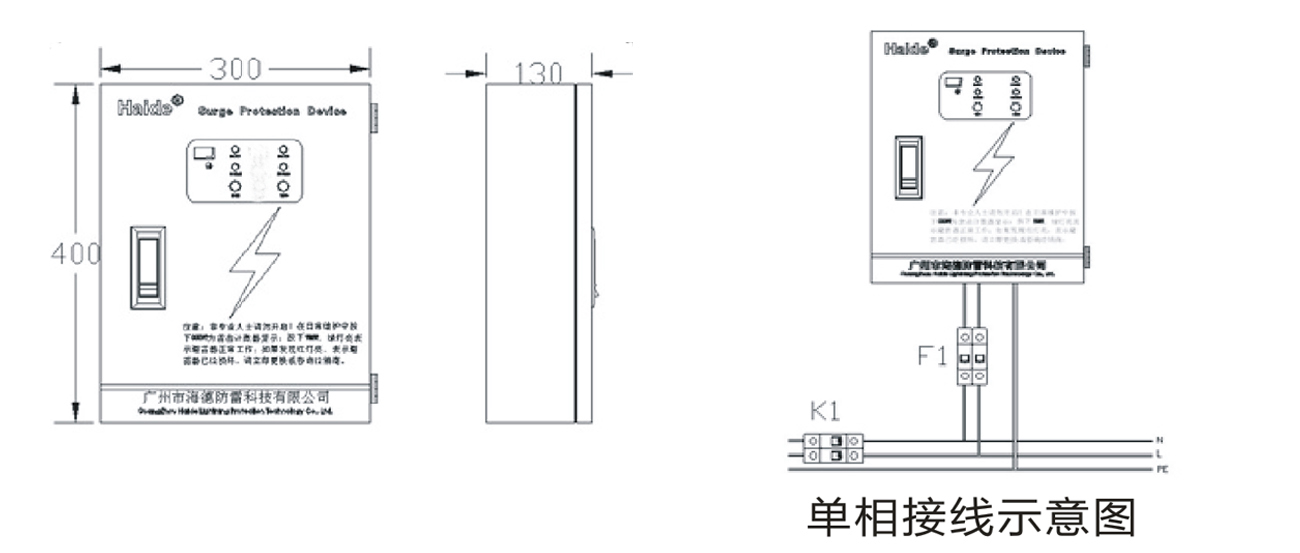 電源相線(L)、零線(N)分別接入電涌保護(hù)器相應(yīng)接線端子,保證牢固及可靠,將避雷器接地端與防雷地線(推薦接地電阻≤4Ω)作良好電氣連接。