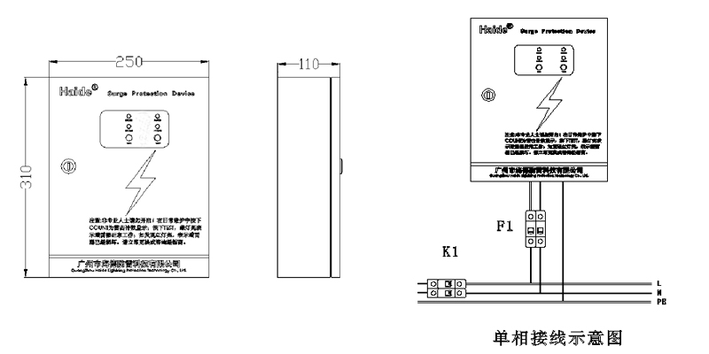 電源相線(L)、零線(N)分別接入電涌保護(hù)器相應(yīng)接線端子,保證牢固及可靠,將避雷器接地端與防雷地線(推薦接地電阻≤4Ω)作良好電氣連接。