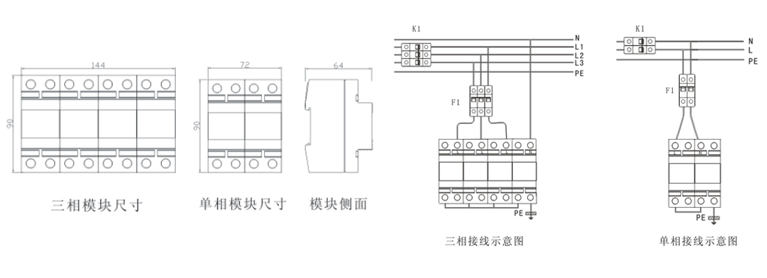 電源相線(L)、零線(N)分別接入電涌保護(hù)器相應(yīng)接線端子,保證牢固及可靠,將避雷器接地端與防雷地線(推薦接地電阻≤4Ω)作良好電氣連接。
