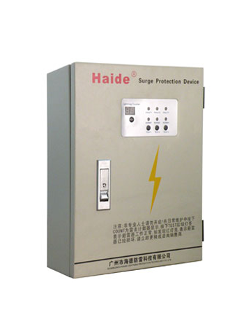 Electric surge protector of composite low-voltage distribution system, which is in the form of a box, is designed according to IEC standard. It adopts the most advanced technology of preignition clearance and automatic matching of energy and has validation detection indication, overflowing and overheating protection, lightning stroke numbering display and powerful discharge capacity of lightning current. It can be used in Grade B and C lightning protection for the general supply of building, machine room, plant and enterprise to make sure the safe operation of electronic equipment and other utilization equipment. This lightning arrester is very convenient to be maintained. It connects with the circuit in parallel and has no limit to the power of equipment fixed later.