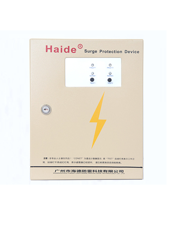Electric surge protector of low-voltage distribution system, which is in the form of a box, is designed according to IEC standard. It has invalidation detection indication, lightning stroke numbering display, overflowing and overheating protection, and powerful discharge capacity of lightning current. It's applicable to the protection of buildings' general supply system against lightning. This lightning arrester is very convenient to be maintained. It connects with the circuit in parallel and has no limit to the power of equipment fixed later.