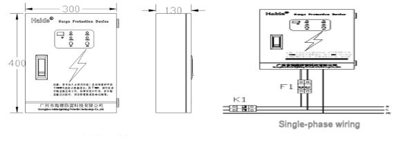 Plug the power phase line (L) and null line (N)into corresponding connector of the electric surge protector and make sure it's firm and reliable. Connect the ground terminal of arrester with the ground lead of lightning protection well (recommended earth resistance ≤4Ω).