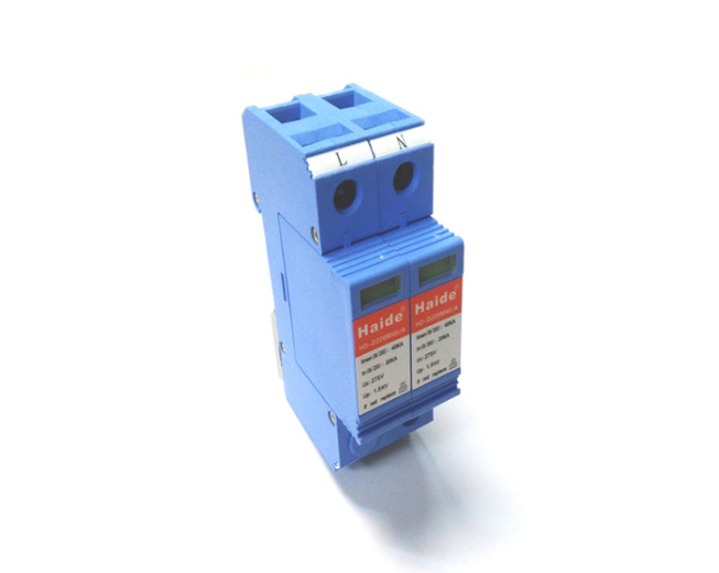 Electric surge protector of low-voltage distribution system is design according to IEC standard.It has invalidation detection indication,standard modularization installation,changeable lightning protection module and powerful discharge capacity of lightning current.It’s appliable to the protection of buildings’ general supply system against lightning.With 35mm standard guide-way,this lightning arrester is very convenient to be maintained.It connects with the circuit in parallel and has no limit to the power of equipment fixed later.