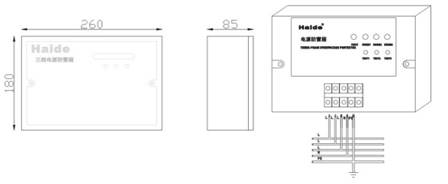 Plug the power phase line (L) and null line (N)into corresponding connector of the electric surge protector and make sure it's firm and reliable,and connect the ground terminal of arrester with the ground lead of lightning protection appropriately (recommended earth resistance ≤4Ω).